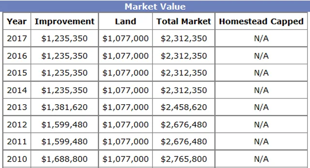 Mayor Rawlings’ Assessed Value Goes Down While the City Goes Up. (Source: DCAD)